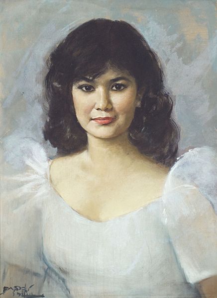 Basuki Abdullah painted this oil-on-canvas portrait, titled "Wanita Berkebaya Hijau," in Indonesia. Abdullah was best known for his academic style. He received his art education in the Western tradition, during colonial times. He was even commissioned to paint portraits of European royals and heads of state. Here, Abdullah used his artistic skills to render an Indonesian woman wearing a 'kebaya', a traditional blouse-dress. The 'kebaya' is a cultural symbol of Indonesian identity. The woman's elegant and poised demeanor reflects the values of Indonesian culture and high society. Abdullah’s work is a complex negotiation between Western academic style and Indonesian cultural identity. It is something that continues to inform Indonesian modern and contemporary art. To understand the dynamics of Indonesian art, we can look into the development of art institutions, art education, the art market, and the impact of post-colonialism. All these aspects provide valuable insights into the work of artists like Basuki Abdullah.