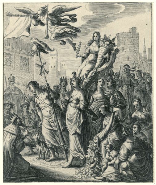 Willem van Haecht II created this print depicting the siege of Saint Ursula using the intaglio process of etching. Lines are bitten into a metal plate with acid, then filled with ink and printed. It's a process allowing for complex narrative scenes, densely populated and emotionally charged. Note the contrast of the vulnerable figures of Ursula and her followers with the heavily armed Huns, and the heavenly apparition above. Etching, like other printmaking techniques, sits at an interesting intersection of art and industry. It’s a means of mass production, allowing for the wide dissemination of images and ideas, a kind of proto-photography. Prints like these were produced in workshops, involving the labor of skilled artisans working under the direction of an artist like van Haecht. The prints were relatively affordable, making art accessible to a wider audience than paintings or sculptures. Understanding the material and the making of the artwork gives us insight into the broader social and economic context in which it was created. It's a reminder that art is not just about individual genius, but also about collaboration, craft, and the technologies that shape our world.