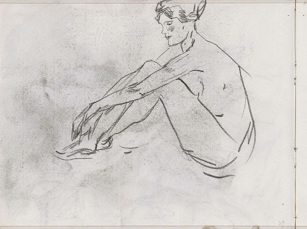 Curator: Look at the economy of line in this watercolor and crayon portrait by Toulouse-Lautrec. Painted in 1894, this piece, entitled "The Flower Seller," is really quite fascinating. What springs to mind for you? Editor: I’m struck by the contrast between the very definite outlines and then the sketchiness in the rendering of the flowers. There’s something slightly melancholic about it, actually. The muted colors, the woman looking off to the side. It feels more like a captured moment than a posed portrait. Curator: Absolutely. It feels deeply personal, doesn't it? One senses the connection Lautrec had with the sitter. And he often explored themes of intimacy, of fleeting connections, which gives it a vulnerability. But tell me more about this sketchiness in the flowers, why is this interesting to you as a materialist? Editor: Because look how they're contained. The wilting flowers are imprisoned in a clearly man-made construction, like the wicker basket, itself formed and shaped by labor and a particular social organization. Even beauty, as represented by the flowers, comes with a means of production, right? There’s the harvesting, the selling… it’s all labor, obscured perhaps by the elegance of impressionism. And yet visible. Curator: Ah, yes. That weaving binds them and defines them as much as their delicate blooms might suggest otherwise. But doesn't that confinement also amplify their transient beauty? The immediacy of the moment becomes all the more poignant, doesn't it, precisely because it's captured with such a delicate medium as watercolor, the colors hinting at an intensity just out of reach? Editor: Perhaps, but let’s not overlook that medium, you said "delicate". Watercolor on paper like this also speaks of relative affordability and widespread availability in that period; it speaks to a developing, growing commercial art world – as well as the potential disposability of the object depicted, just as lovely cut flowers fade away too quickly. It is beautiful, but there's commerce driving it. Curator: A vital point! Beauty and industry inextricably linked; perhaps this woman selling these quickly perishing products has a symbolic depth that encompasses both their fleeting beauty and the tough life involved in selling them on street corners. A captured impression with material consequence! Editor: Indeed. A beautiful image of labor, and labor to create beauty, not something that is often thought of. Thank you. Curator: Thank you. The flowers give a glimpse into the late-nineteenth century economy that shaped even something as seemingly innocuous as flower-selling. A reminder that even the most seemingly beautiful thing has a hard-won, crafted existence.
