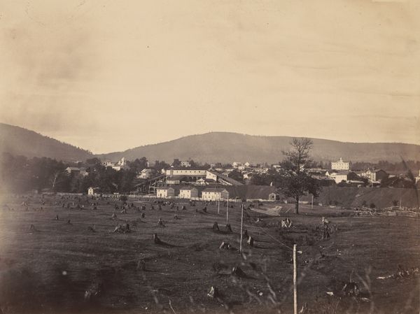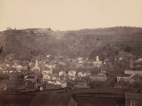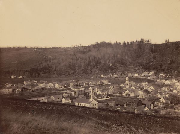Thomas H. Johnson’s photograph presents a panoramic view of Carbondale, its geometric forms softened by a sepia tone, lending it a nostalgic, almost dreamlike quality. The town is meticulously structured, its architecture a play of lines and angles that create an intricate pattern across the landscape. This ordered arrangement can be seen as a manifestation of 19th-century ideals concerning progress and industrialization. The careful attention to detail and the overall composition highlight a human desire to impose order on nature. The lines of the canal and railway dissect the landscape, imposing a grid of development. The photograph can be interpreted as a set of signs reflecting a semiotic system, with each building representing an aspect of economic or social life. The lack of human presence, paradoxically, underscores the community’s values, emphasizing its constructed environment over its inhabitants. Ultimately, Johnson’s work functions as a formal document, but also as a cultural artifact, inviting us to examine the ways in which we construct and perceive our world.