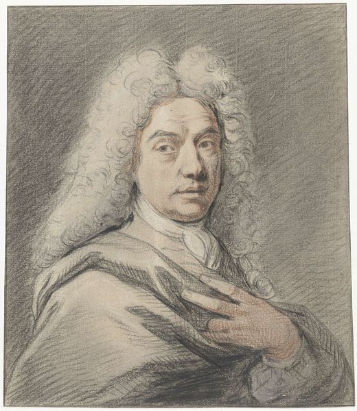 Johannes de Groot made this portrait of Johannes Jacobus Vitriarius using etching and engraving techniques. Produced in the Netherlands, during the 18th century, this portrait is part of a broader phenomenon: the rise of the bourgeois individual. Vitriarius, with his powdered wig and serious gaze, is presented as a figure of importance and intellect. But portraits like this one didn't just reflect social standing, they actively constructed it. Think about the institutions that supported this kind of art – the print shops, the art academies, and the patronage systems. These institutions played a role in shaping not just artistic styles, but also social values. To understand this portrait, you would have to delve into the archives – examining guild records, estate inventories, and perhaps even Vitriarius's own writings. By doing so, we can start to unpack the complex social and institutional forces that shaped both the artwork and the world in which it was made.