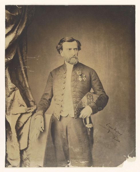 This photograph of Sir Colin Campbell was created by Roger Fenton, likely around 1855, using the wet collodion process. It was a relatively new technique at the time, involving coating a glass plate with chemicals, exposing it in the camera while still wet, and then developing it immediately. The final print on paper reveals the subtle tonal range achievable with this method, from the deep blacks of Campbell’s uniform to the soft grays of his face and hair. The collodion process, while revolutionary, was labor-intensive and required a portable darkroom tent, especially challenging in a battlefield setting. Fenton, commissioned to document the Crimean War, aimed to legitimize photography as a fine art while also sanitizing the brutal realities of war. This image, with its staged formality, reflects that tension: the material reality of photographic production versus the social and political agenda it served. It reminds us that all art, even photography, is a constructed reality shaped by materials, processes, and context.