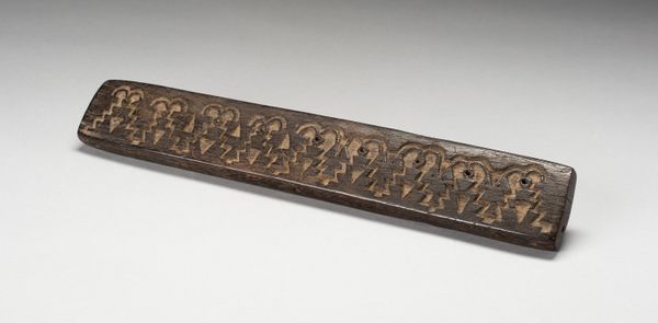This knife handle, or kozuka, was crafted by Furukawa Jochin in Japan. Its surface reveals a scene filled with flowing lines evoking water, clouds, or perhaps even wind, surrounding figures in a dynamic composition. Consider the serpent-like dragon, a symbol of strength and transformation, intertwined here with human forms. The dragon, ubiquitous across cultures, from ancient Mesopotamia to the Far East, embodies primal energy. Here, the way the figures are intertwined reflects a deep engagement with mythological themes. Do we see a scene from folklore, perhaps a deity bestowing power? The image is not static; it moves and breathes. Such serpentine forms echo through history. Think of the caduceus, entwined snakes symbolizing medicine, or the dragon slain by heroes. This image taps into our collective unconscious, a memory that binds us to ancestors. The emotional weight of this image lies in its ability to evoke awe, fear, and respect for the natural and supernatural worlds. These symbols persist, constantly being reinterpreted.