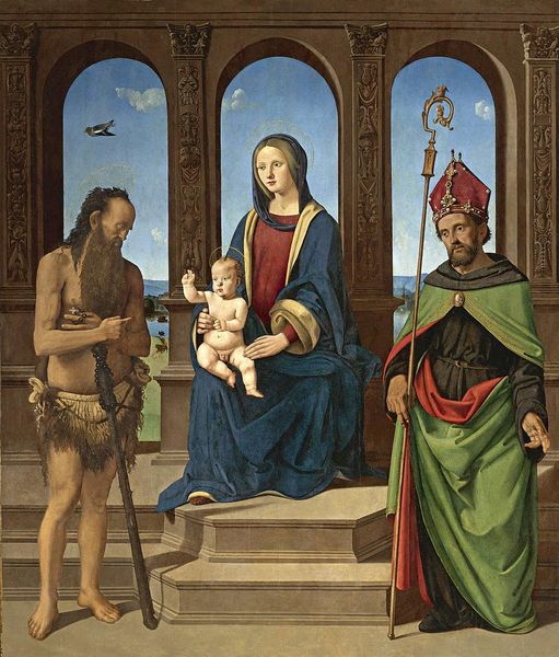 Pietro Perugino's Madonna and Child, flanked by John the Baptist and Saint Sebastian, is a symphony of symbols rendered with oil on wood panel. The figures of John and Sebastian, each in their distinct torment and devotion, frame Mary and the Christ Child, icons of purity and innocence. These figures represent a powerful appeal to collective memory, as the martyrdom of Saint Sebastian has been depicted throughout history, each time tapping into deep-seated fears and fascination with sacrifice. The iconography around Saint John can be traced back to ancient pagan rituals of purification and initiation, which Christianity repurposed. Note the positioning of John’s hand, a gesture repeated across centuries in diverse cultural contexts, from blessing to judgment, revealing our ongoing quest for divine approval. Such symbols possess a timeless quality, engaging our subconscious on a deep, emotional level, their meanings morphing through centuries.