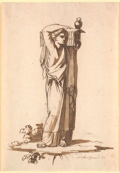 Genaro Gutiérrez created this print of Diana, from "Museum Florentinum", using etching. Notice how the monochrome tones emphasize the sculptural form, inviting contemplation of texture and light. The composition is dominated by the figure of Diana, the Roman goddess of the hunt, with her dog positioned beside her. The artist employs line and shadow to give form to the marble, capturing the smooth, cool surfaces of the statue. Diana’s drapery, with its flowing lines, contrasts with the rigid, controlled lines defining the statue’s base, establishing a visual dialogue between movement and stasis. The arrangement of elements—Diana’s gaze, the dog’s attentive posture—creates a narrative pull, engaging us in a silent dialogue. Consider how the texture of the etching, the play of light and shadow, and the linear precision serve not merely as descriptive tools but as conveyors of cultural values. This is a visual document, a representation of classical ideals, inviting us to interpret and reinterpret its meaning.