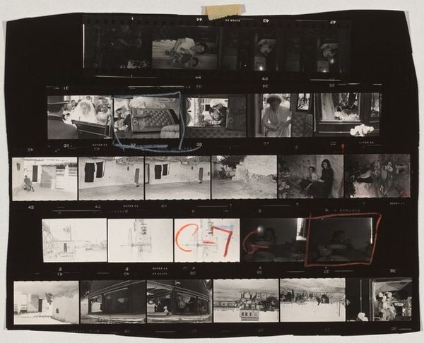 Editor: Here we have Robert Frank's "London 8," a gelatin silver print created between 1952 and 1953. I’m struck by how this sheet of images offers such a raw glimpse into London, capturing the feeling of being in a city undergoing major social and economic change. What is your interpretation of this collection of images? Curator: I see this work as a reflection of post-war urban experience and a critique of social norms through the lens of street photography. Robert Frank's "London 8" captures the city's mood, showcasing both its resilience and alienation. I want to ask: what visual or cultural signs tell you that this is a time of social and economic transition? Editor: I think it’s the contrast—the darkness in the streets juxtaposed with the vibrant lights. The city seems alive, but also perhaps unsettling. There’s a palpable feeling of unease. What makes his work stand out from other documentary photographers of that era? Curator: Frank was innovative in his approach by challenging photographic conventions. In contrast to traditional, often staged or carefully composed documentary photography, he prioritized capturing fleeting moments and raw emotions. Do you feel that capturing those feelings breaks barriers in what is normally seen in art at the time? Editor: I do, there is nothing picture perfect in it; he showed it as it was. Thinking about it, that's what truly connects me to his work; it shows how documentary photography serves as a mirror to societal shifts and changes in cultural perspective. It is not just capturing a moment, but capturing reality, to its most real form. Curator: Exactly. "London 8" is important because it provides insights into the intersection of individual lives, social dynamics, and urban spaces in post-war Britain, shaping how we think about the period today. It made an impact on documentary style photography. Editor: This makes me look at London's landscape and what the impact was and still is today.