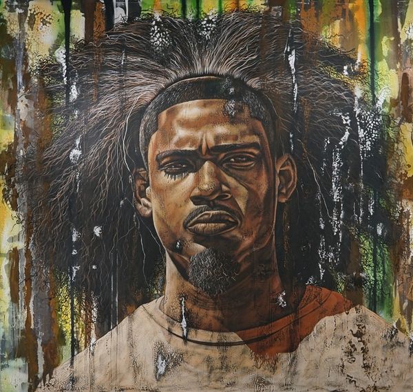 Alfred Conteh made this work, Lil’ E, using mixed media to create a portrait with striking immediacy. The figure, cloaked in a hoodie, stares intently to the left, his expression a mix of vulnerability and defiance. Conteh is an artist working in the United States, and his work addresses issues of race, identity, and the representation of Black men in contemporary society. This image creates meaning through its direct gaze, the sitter's posture, and the cultural associations of the hoodie, which has become a loaded symbol in American discourse, especially regarding racial profiling and social justice movements. The cultural and historical context of this work is rooted in the ongoing struggle for racial equality and the need for authentic representation in the arts. Understanding this piece involves exploring the ways in which art institutions have historically marginalized Black artists and the ways contemporary artists like Conteh challenge those established norms. We can research how artists depict Black people to promote social change and to foster a deeper understanding of identity in our society.