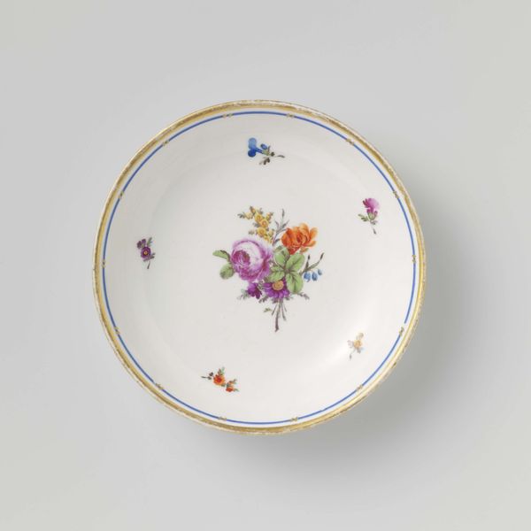 This is a porcelain dish with bouquets tied in a ribbon, made by Porseleinfabriek Ludwigsburg. Dishes like these reflect 18th century Europe’s fascination with the natural world. The floral motifs and delicate ribbons embody the Rococo style, an aesthetic that dominated aristocratic tastes. These decorative elements also speak to broader social themes. In a society where class distinctions were rigidly enforced, luxury items such as this dish played a crucial role in signaling status. Owning and displaying such objects was a way for the elite to perform their identity. However, this performance relied on the exploitation of resources and labor, often from colonized lands. The porcelain itself, reminiscent of sought-after Chinese ceramics, hints at global trade networks and colonial power dynamics. The flowers, while seemingly innocent, might have been exotic species brought back from expeditions, subtly referencing imperial expansion. This dish, with its celebration of beauty and refinement, is therefore also a reminder of the complex and often troubling historical context in which such objects were created and circulated.