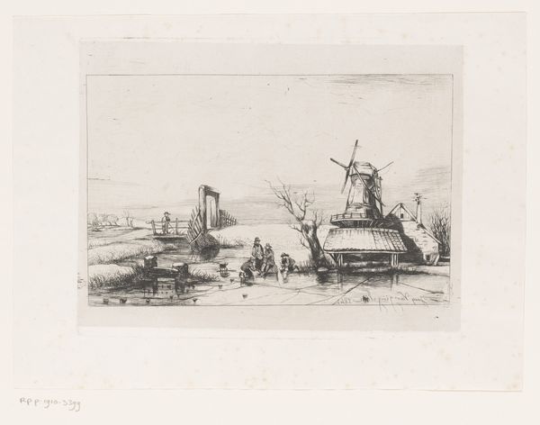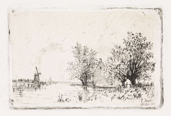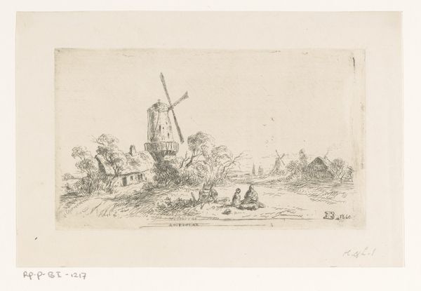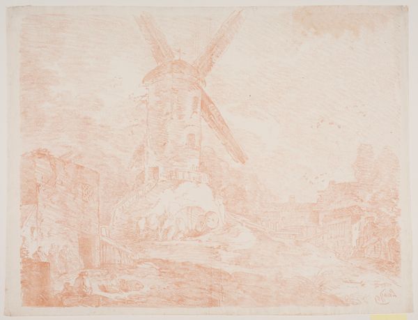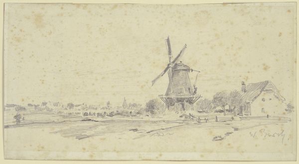 Jan van Goyen made this drawing, "Landskab med en mølle," with pen and brown ink. It's a scene dominated by a windmill, a structure crucial to the Dutch economy of the 17th century, as they were used to drain the land for agricultural use. Van Goyen's choice of medium emphasizes the importance of direct observation and skillful handiwork. The brown ink, fluid yet precise, captures the texture of the buildings and the landscape with remarkable economy. Look at how the artist has created the illusion of depth, using the thinness of the lines to his advantage. Drawings like these were not just preparatory studies, they were also commodities. Sold to collectors interested in the Dutch landscape, they became a symbol of national pride. This drawing is an example of how art and commerce intertwined, celebrating the industrious spirit of the Netherlands. It challenges any separation of fine art and craft, highlighting the value of skilled labor and the beauty found in everyday life.