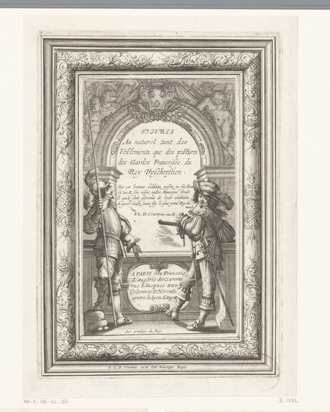 This print, titled 'Dansende jongen', presents a theatrical scene framed by an ornate, asymmetrical border. The composition is immediately striking: a lone boy occupies the center, caught in a dance, flanked by rows of onlookers. The artist uses linear perspective to draw our eyes into the staged space, defined by architectural elements such as doors and a chandelier. The contrast between the detailed foreground figures and the more vaguely rendered background creates a sense of depth. Encoded within the print is the concept of performance and spectatorship. The asymmetry of the border challenges traditional notions of balance, creating visual tension. The artist seems to suggest the destabilization of established norms through this juxtaposition of the classical and the irregular. The artwork's structure and form invite us to consider how visual elements can signify cultural values, and challenge fixed meanings. Art, therefore, functions as an ongoing conversation.