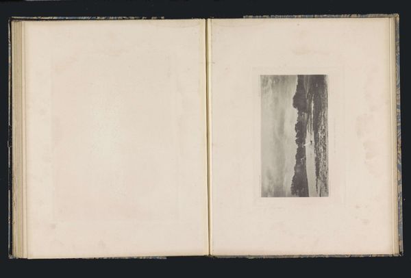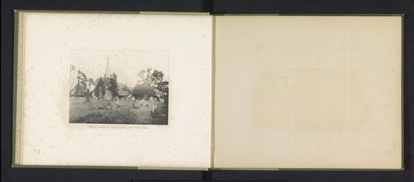 This photogravure titled "Vrouw op een kerkhof" was created by Pierre Dubreuil. The image presents a stark, somber scene dominated by the contrast between light and shadow. Note how the composition divides the visual field: on the left, the light is subdued, almost concealing details, while to the right, a small building is depicted, casting a shadow that leads to a figure, presumably a woman, standing near what appears to be a cemetery. Dubreuil's choice of photogravure as a medium enhances the tonal range, allowing for subtle gradations that emphasize the moodiness of the scene. The blurring effects and soft focus serve to distance the viewer, inviting contemplation rather than direct engagement. He is destabilizing a clear representation of what we are seeing. Through these formal manipulations, the photograph moves beyond mere representation, becoming a meditation on mortality and memory. The scene challenges us to consider the boundaries between presence and absence, visibility and obscurity, prompting a deeper reflection on the nature of remembrance.