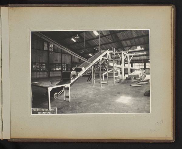 Curator: This gelatin silver print, dating possibly to 1935, is titled "Theesorteerinstallatie," and the artist is listed as anonymous. It resides here at the Rijksmuseum. What are your initial thoughts? Editor: Bleak. Strikingly bleak. The harsh geometry of the industrial architecture dominates, doesn't it? The way the light reflects off the metal... almost clinical. Curator: Indeed. The photograph depicts a tea sorting installation, offering a glimpse into the mechanized processes of commodity production in the early 20th century. We should consider labor, exploitation, and how this image might function as propaganda for industrial progress, despite its apparent austerity. Editor: I'm drawn to the composition itself. The lines—the conveyor belts, the girders of the roof—converge in a way that emphasizes the depth of the space. It is beautifully structured; even the tonality offers a complete range from dark to light that defines the planes perfectly. Curator: The anonymous nature of the photographer also plays a crucial role in understanding the artwork. Were they commissioned? What political stance does the image assume towards technological advancement and worker alienation, for example? Editor: It could also simply reflect an aesthetic choice of the photographer, to embrace this new industrial sublime with a certain level of precision and attention to light, shadow, form, and the overall abstractness within a utilitarian framework. Curator: I can see your point, however, in considering class dynamics within photography, it can't simply become a conversation solely about aesthetics, as this ignores how such images helped build economic empires. Editor: True, although I think we're both ultimately in agreement. Perhaps its value resides precisely in its visual tension—between the bleak depiction of work and the undeniable appeal of its composition. Curator: Yes. Ultimately, this piece is a provocation for dialogue on both exploitation and human achievement. Editor: And one that leaves me strangely hopeful that people have the chance to see it and appreciate what they see for themselves.