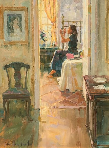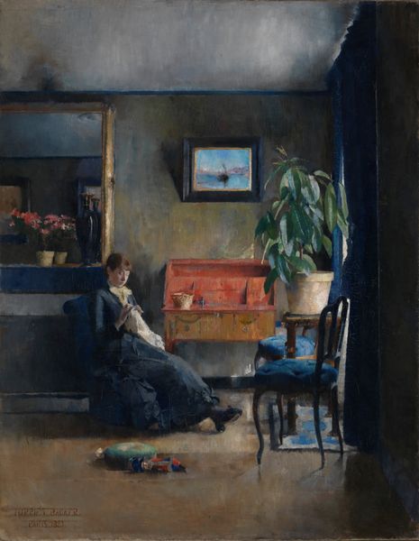 Anna Ancher created "Sunlight in the Blue Room" with oil paint on canvas, sometime around the turn of the 20th century. The brushwork is loose, almost casual, with a visible texture that captures the light. Ancher wasn't interested in perfect realism. Instead, she used her materials to evoke a feeling. Notice the way the thick paint builds up, particularly on the wall where the sunlight falls. It’s not just a flat surface; you can practically feel the warmth radiating from the painting. Consider the social context. Ancher was part of the Skagen group, a community of artists who valued working directly from nature, capturing the everyday lives of the local people. The painting feels intimate, domestic, a glimpse into a private world far removed from the rapid industrialization happening elsewhere in Europe. It celebrates the beauty found in simple moments, elevated through the artist’s skilled hand and careful observation. Ultimately, understanding Ancher’s process—her choice of materials, her technique, and her attention to the world around her—is key to unlocking the artwork's profound and enduring appeal.
