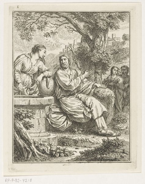 Pietro da Cortona created this print, titled *Christ Appearing to Mary in the Garden,* using etching in 1768. Da Cortona, working in the 17th century, was a key figure in the development of Baroque architecture and painting. Here, we see a representation of a pivotal moment from the New Testament: Mary Magdalene's encounter with the resurrected Christ. The depiction invites us to consider the gendered dynamics of religious narratives, where female figures often serve as witnesses or recipients of divine revelation. Mary Magdalene, traditionally depicted kneeling or reaching out, embodies the complex interplay of reverence, supplication, and recognition. What does it mean to place a woman as the first to see the resurrected Christ? What assumptions are being made about the appropriate ways for women to express their belief? This piece encourages us to reflect on the stories we tell, and the ways we visualize faith and belief.