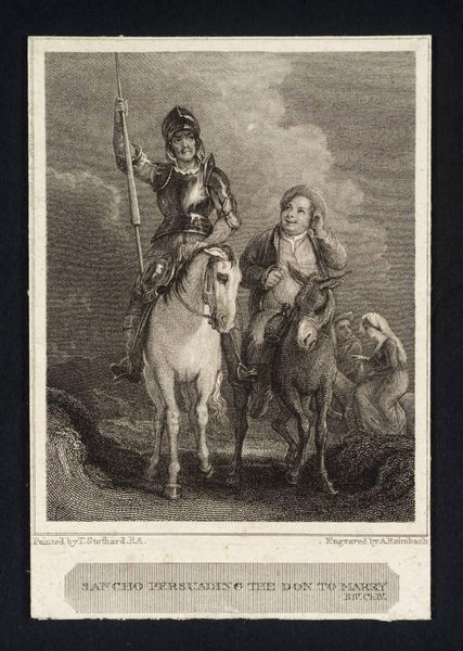 Editor: Here we have James Charles’s “Charles I of England with the Duke of Hamilton.” I’m struck by the composition; the figures seem staged against a backdrop rather than integrated within it. What do you see in the contrast between the subjects and the landscape? Curator: Note the calculated arrangement: the precise posture of Charles, balanced by the Duke's casual stance and the horse's bowed head. The light catches the textures of fabric and fur, creating a visual hierarchy that emphasizes Charles's regal bearing. The landscape functions as a formal element, directing our gaze and reinforcing the subject's authority. Editor: That's a fascinating way to put it. I hadn't considered how deliberately constructed the composition is. Curator: Indeed. This controlled presentation serves to project power and legitimacy. Editor: I'll definitely look more closely at composition from now on.