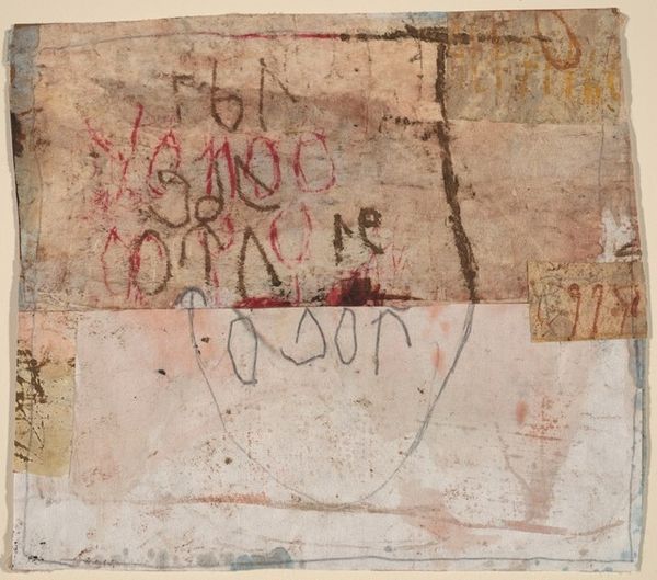 Hannelore Baron made this untitled collage from paper and mixed media, and the way the materials seem to be distressed reminds me that artmaking is often about the process of layering and uncovering. Looking closely, I see scraps of patterned paper and rough-edged rectangles arranged on a weathered grey ground, all stitched together with dark thread. The thread almost looks like a child's drawing. The textures are palpable, the paper seems thin and fragile. There's a balance between geometry and gesture, seen in the contrast of the shapes in the middle ground, and the marks scattered around the surface. I find this intriguing. The whole thing has a quiet, contemplative mood. Baron's work, particularly her collages, remind me of Kurt Schwitters' Merz constructions, though Baron's aesthetic is more muted. Both artists show us how beauty and meaning can be found in the discarded and overlooked, that art is about continual conversation.