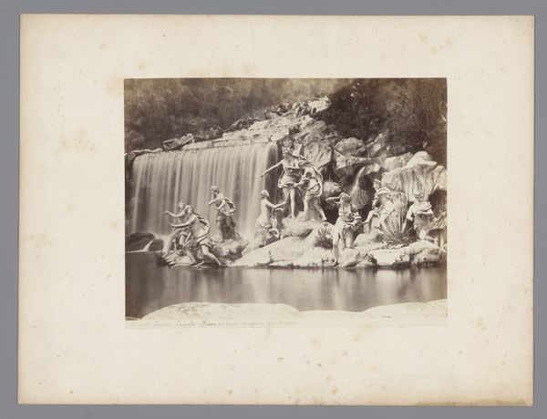 Giorgio Sommer captured this photograph of the Fountain in the Garden of the Palace of Caserta, Italy, in the mid-19th century. The image presents a study in contrasts, principally of static form versus fluid movement. The solid architecture of the palace gardens, with their tiered fountains and stone steps, provides a structured framework. This is juxtaposed against the cascading water, which introduces a dynamic element. The composition is carefully arranged, leading the eye from the foreground's intricate stonework to the more distant, monument and landscape. Sommer’s use of light and shadow enhances the textures of both the water and the stone. The photograph thus not only documents a physical space but also engages with broader themes of nature, culture, and the aesthetic experience. These considerations invite continued contemplation and discussion.