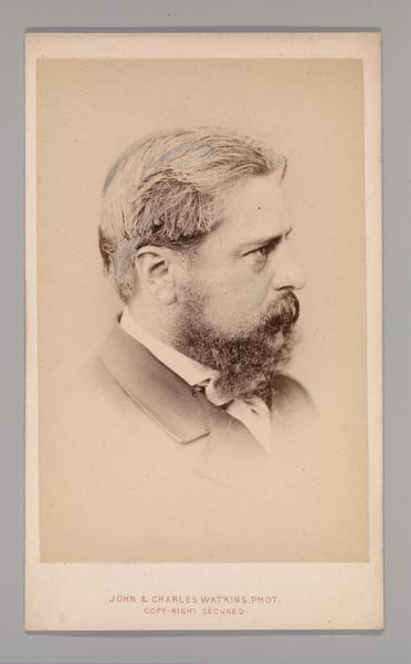 Editor: So this is "Portrait of George Hendrik Breitner", circa 1920, a gelatin silver print. The monochrome palette really draws attention to the texture of his face, all the little lines and imperfections. How would you interpret this work? Curator: The power of this image lies in its stark realism, yes, but beyond that, it’s a fascinating study in cultural memory. Breitner himself, captured here late in life, was known for his gritty, unflinching depictions of Amsterdam. In a way, this photograph serves as a symbolic record, not just of the man, but of his artistic vision and contribution to how the city was seen. What elements stand out to you, suggesting something beyond simple representation? Editor: Well, his gaze is directed off to the side, almost wistful, maybe suggesting he's looking toward the future, or contemplating the past? And that little flower detail adds some character to his suit. Curator: Precisely! The gaze creates narrative potential. As for the flower, consider it a deliberate act. A symbol, even on the lapel, speaks of an aspiration for beauty amidst an often-difficult world. This was during a period when symbolism infused art. Also, the flower is likely added by the photographer, whose signature, either through overt signature, may also subtly announce their hand in shaping Breitner’s lasting cultural image. Do you think this makes it about Breitner or how we want to remember Breitner? Editor: That’s an interesting question… Maybe it's both? A memory within a memory. It definitely made me consider the artistic and social context that it's trying to represent. Curator: Agreed, the photograph captures the artist, and something more: the layered complexities of remembrance and representation. Editor: I definitely learned more about symbols than what I expected in photography. Thanks!
