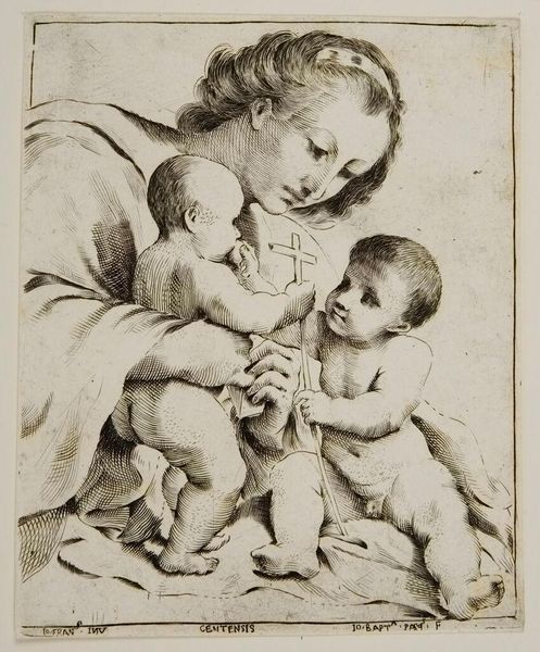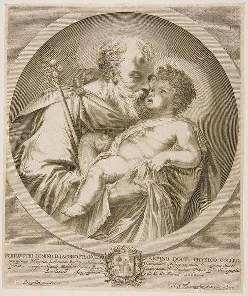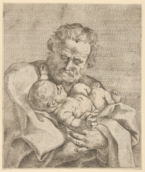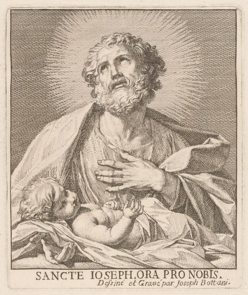 Editor: Here we have Joseph Wagner’s "Joseph and the Christ Child." It looks like an engraving, with fine lines creating soft forms. What can you tell me about the printmaking process and its social context at the time? Curator: Let's consider the economics of printmaking. Engravings like this allowed for the mass production of religious imagery. Who could afford these prints, and how did that shape the artistic choices Wagner made? Editor: So, the materials used and the production methods dictated who could access the art. That’s a different way of thinking about religious images. Curator: Precisely. This was a business as much as it was an act of devotion. How does that affect your understanding now? Editor: It makes me think about accessibility and the democratization of art, even in the 18th century. Thanks!