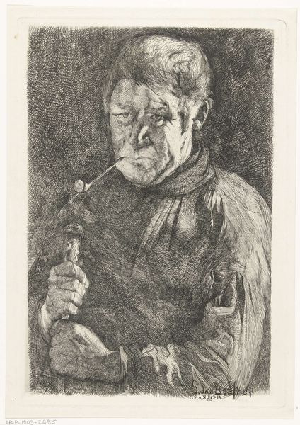 This is an etching by Imre Reiner. The fine lines of the print were achieved by applying acid to a metal plate, and the image is then transferred to paper. Look closely, and you’ll see how the etching technique lends itself to a stark contrast between light and shadow, creating depth, and a sense of drama. The figure in the foreground is rendered with bold lines and cross-hatching, giving him a solid, almost caricatured presence, while the figures behind are more ethereal. This contrast in texture adds to the dreamlike quality of the scene. The printmaking tradition has deep roots in both craft and fine art. It's a process that can be reproduced, democratizing the image, making it more accessible, and reaching a broader audience than a painting might. The labor involved in producing an etching is also noteworthy. It requires technical skill, patience, and meticulous attention to detail. Reiner’s print sits at the intersection of labor, skill, and artistic vision, challenging the divisions between art and craft.