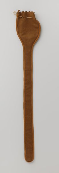 Curator: Here we have a wooden sheath from around 1848-1858, crafted to hold the dress sword of politician C.P.M. Romme. Editor: It looks strangely gentle, doesn’t it? I mean, the color, the wood…not the menacing impression you'd expect from something associated with a sword, and especially not a politician of the period. It has a kind of simple elegance about it. Curator: Well, presentation was key in politics back then. Displaying accoutrements like a sword—and its sheath—was a mark of status, intended to project a certain image of power and sophistication. The craftsmanship would speak volumes about the owner. Editor: So it's less about pure utility, more about...conspicuous craft? The making of this object itself—the wood selection, the carving, even the method used to finish the piece, it would have been an exercise in demonstrating both access and taste. Were these crafted to order for politicians like Romme? Curator: More than likely. We have to remember the context: Romme was a very prominent figure, serving multiple terms as a representative. Someone of his stature would commission the finest materials and workmanship. It's not just a practical object but a political statement. Editor: Right, it says "I am powerful, discerning," etc. Thinking about it more in that light, though, shifts its appearance again. This material announces position but with the understanding that those who need to recognize it, will. Almost the opposite of what is "loud" now, materially. It makes me wonder what kind of access craftsmen and producers had to politicians like Romme and what pressures, materials, or time was imposed. Curator: A very good question. Such an object tells the history of its subject and, with this in mind, it would offer glimpses into the economic and social fabric of that era. How class, power, and manufacturing intersected. It offers a lot to ponder. Editor: Indeed. Viewing it as both sculpture and case—a humble but firm outer-shell of another equally political and aesthetic device is something else to think about as well. Curator: Yes, I agree. Hopefully, by understanding that history, we get a much richer reading of this unassuming piece.