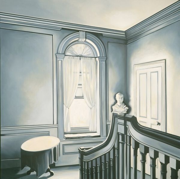 Curator: This is a fascinating late 19th-century piece titled "Interior Design for a Gray Curtained Alcove, with an Upholstered Armchair, Ottoman and Cabinet." It's currently part of the Metropolitan Museum of Art's collection, though the designer remains anonymous. Editor: The color palette strikes me first – the muted gold curtain against the pale blue walls creates a sense of subdued luxury. It’s like a stage set, carefully composed and slightly melancholic. Curator: I think that captures something essential. Considering its timeframe, around 1880 to 1900, we're looking at a society undergoing significant shifts in gender roles and class structures. This meticulously designed alcove may be understood as an attempt to articulate social aspirations within a rapidly changing world. Editor: Right, and it does convey stability. The classical column motif contrasted with what looks like an Art Nouveau style armchair points to the era's shifting visual language. The repetition of circular shapes - the ottoman, the chair's form, the rosette on the column—creates a self-contained world, almost womb-like in its feeling of enclosure. What do you think it says about how women were viewed at that time? Curator: That's insightful. We might see it as emblematic of the prescribed domestic roles for upper-class women: a haven but also a confine. Note the arrangement where every element reinforces containment and comfort. The lack of figures reinforces its isolated ambience; we can only interpret the absence by asking questions about who and what this carefully controlled domestic setting sought to represent. Editor: The single, unadorned vase within the cabinet then becomes potent—a symbol, perhaps, of feminine presence and domestic creativity carefully contained within this stylized space. I also see a reference to permanence with those stylized motifs. Curator: Yes. It becomes important to acknowledge these kinds of historical interpretations because that makes visible the way these seemingly simple arrangements convey meaning over time and in new contexts. Editor: Ultimately, this exploration makes you consider how physical spaces, especially intimate ones, shape and mirror larger social forces and individual stories. Curator: Precisely. And this dialogue illuminates that relationship from multiple critical positions, reminding us how vital interdisciplinary perspectives are in art interpretation.