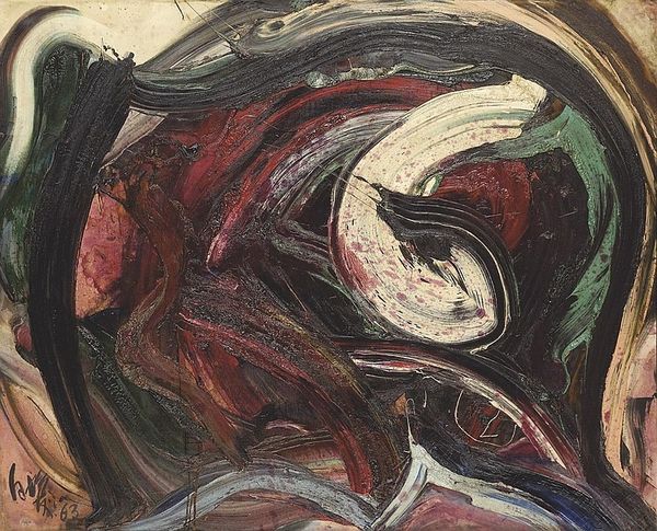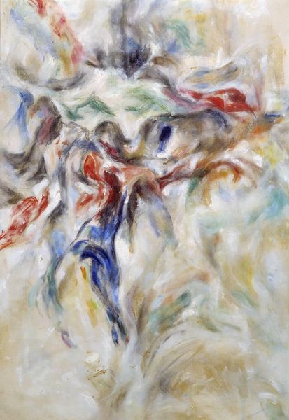 Editor: We're looking at Claude Monet's "Irises," painted in 1917. It’s an oil painting and when you stand in front of it, you can almost feel the texture of the paint. What’s fascinating to me is how he’s depicted the irises not as delicate blossoms, but almost as raw, growing matter. What do you see in this piece? Curator: What strikes me is Monet’s process here. We know he was working en plein air, immersed in his garden. Consider the labor involved: preparing the canvas, mixing the oil paints – pigments sourced, ground, and bound – a very physical engagement with materials and the land itself. The brushstrokes, so visible, they emphasize that act of making. Editor: That's a great point, the sheer effort involved in creating art like this, outside, in a garden… do you think the materials themselves played a role in how Monet depicted the irises? Curator: Absolutely. The viscosity of oil paint allows for layering, for building up texture. He's not just representing irises, he’s using the materiality of paint to convey the *experience* of irises, the feel of the leaves, the density of the flower. This was post-impressionism, remember – pushing against traditional representation. What kind of labour was necessary for this "experience" to become "high art?" Editor: It’s easy to get lost in the beauty of the painting, to forget the artist’s physical connection to it. I hadn’t considered the layers of production involved! Curator: Exactly. By examining the material realities – the land, the pigments, the brushstrokes – we can appreciate how Monet transformed common elements into a potent artistic experience. Editor: Thanks. Thinking about it this way helps connect the artwork to its cultural background and how much labour the art piece must have required to be realized.