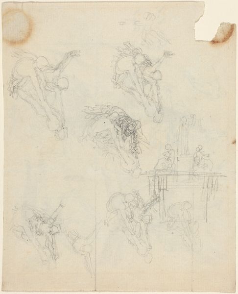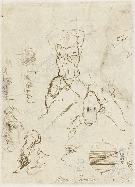 Editor: Here we have John Hamilton Mortimer's "Sheet of Studies; a Male Caryatid, an Urn, Acanthus Scrolls Etc." It's a delicate dance of ink on paper, filled with classical motifs. It feels like a peek into the artist's mind. What strikes you most about this sketch sheet? Curator: It feels like Mortimer is channeling Michelangelo, doesn’t it? A flurry of ideas captured in restless lines. I see a yearning for the monumental, even in these fleeting studies. Can you sense the weight, the tension, in that caryatid's pose? He's carrying not just a structure, but the weight of history itself, wouldn't you agree? Editor: Absolutely! It’s like he’s wrestling with the past, trying to bring it to life on the page. Curator: Precisely! And it makes me wonder: what burdens do we, as artists and viewers, carry today? Editor: I'll be pondering that for days. Thanks!