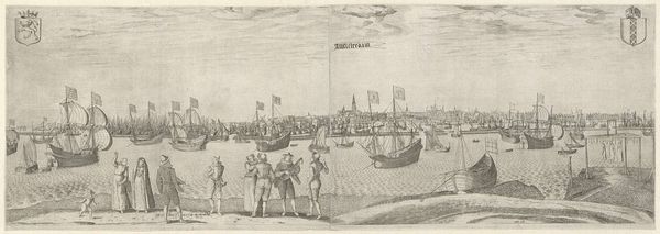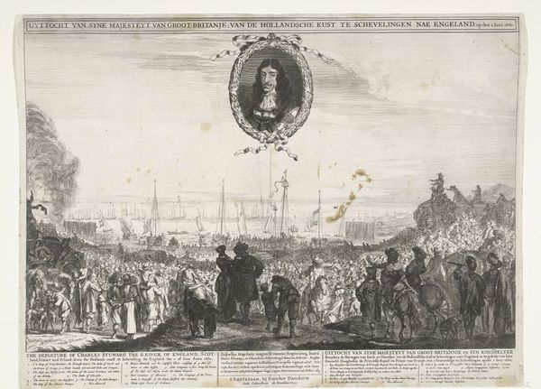 Editor: This engraving from 1832, titled "Lijkvaart van Jan van Speijk bij de Nieuwe Stadsherberg," depicts the funeral procession of Jan van Speijk. It's quite a detailed print, though the grayscale and fineness of the lines give it a somewhat somber mood, wouldn't you agree? I'm curious, what aspects of this scene particularly resonate with you? Curator: Oh, it's the very fabric of Dutch national identity woven in ink, isn’t it? This image—stiffly rendered, mind you—speaks volumes about how narratives solidify around tragic heroism. Van Speijk, a Lieutenant who chose self-destruction over surrender—boom! And here he is, floating into legend. Note the Dutch flags. A lot of them! Are they celebrating? Mourning? It's a bit much, almost performative. Editor: Performative, that's a great word for it! The flags, the crowds… it’s definitely a constructed image. But does that lessen the emotional impact for viewers at the time? Curator: Impact? Guaranteed. Consider the relatively recent loss of Belgium! National morale needed a shot in the arm, didn't it? An heroic narrative was born! Engravings like these? A cheap and reproducable patriotic pick-me-up. Look at the way the light catches the water and then those little boats… they evoke an almost classical sense of... *sigh* ...grandeur. Editor: So, the romanticism, then, is somewhat manufactured to boost morale? Curator: "Manufactured" is perhaps too strong but propaganda? Maybe. Regardless, isn't it interesting how historical events become curated memories? That’s what really fascinates me, and that this simple print has triggered us to talk about it… isn't that magic? Editor: Absolutely! It’s definitely made me rethink the relationship between art, history, and national identity. Thanks so much for your insights!