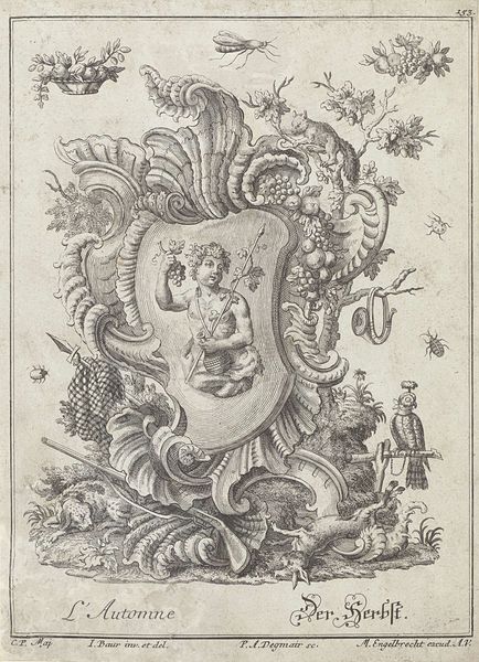 Curator: Oh, I'm immediately struck by how precarious it all looks! There's this man bearing the weight of…everything on his back. Slightly unsettling, if I'm honest. Editor: Indeed. What we’re looking at is an engraving from 1548 by Balthazar van den Bos, currently held here at the Rijksmuseum. The wonderfully descriptive title is, "Kan in de vorm van een slakkenhuis, rustend op de rug van een man die op een schildpad zit", or translated, "Jug in the shape of a snail shell, resting on the back of a man sitting on a turtle". Curator: A jug, you say? It feels more symbolic, doesn't it? The figure struggling, the snail shell… perhaps it speaks to the burden of the everyman, slowly inching forward with the weight of society bearing down. Editor: Or perhaps it is about the making? This object speaks of mannerism through form and figuration; the engraver using readily available metals, transforming functional designs from the Renaissance period. Curator: Right! The sheer artistry of manipulating these materials to create such a bizarre yet beautiful form is impressive. See the shell's swirling details. There is beauty within the weight of daily drudgery. It's really striking how he emphasizes form. Editor: Van den Bos also emphasizes labor. Consider the intricate design, the time, the expertise needed to produce this object. It was about demonstrating wealth, yes, but also about the labor embedded within the metalwork. It raises questions about class and status in Renaissance society. Curator: Perhaps! I get lost thinking how everything in this world can be considered as heavy, and there's someone out there working through it, trying to carry what can barely be touched or moved! Editor: Right—I agree—engravings also democratized images and ideas, making luxury designs like this available to a wider audience through replication and exchange. The print acted as a means of cultural transmission and facilitated consumption habits, desires, or taste to rise amongst a bigger group of people, a new audience. Curator: Food for thought! I hadn’t considered its social context, seeing its purpose now transforms my relationship to the artwork, not only as aesthetic form, but how the process involved can trigger and cause new perceptions for others to learn through it! Editor: Exactly. I'm walking away seeing new connections here, understanding a little more how society shapes art, and art, in turn, shapes us.