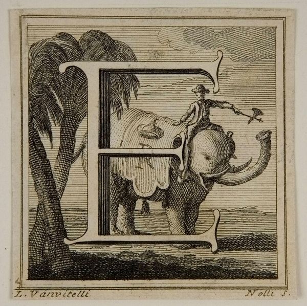 Editor: This is "The Initial 'T' with Pyramus and Thisbe," attributed to Francesco Allegrini. It's a tiny print! It looks like a scene from a tragic play embedded within the letter. What's your take on this, especially given its form? Curator: It’s curious, isn’t it? The 'T' becomes a stage for this ill-fated love. Notice how the figures intertwine with the letter’s shape – almost trapped by it. It suggests that their destiny, like this story, is fixed, predetermined within the very structure of language. What do you think that says about how we tell stories? Editor: That's a heavy thought! It’s like the alphabet itself is complicit in their doom. It's really making me think about the power of narrative. Curator: Exactly! Sometimes the most profound stories are etched in the smallest spaces.