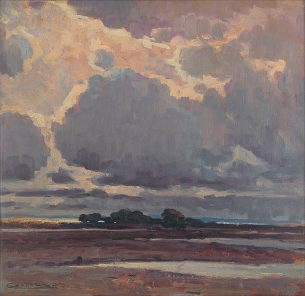 Pierre-Auguste Renoir created this painting, Marine, using oil on canvas, resulting in a textured surface. The composition is structured horizontally, dividing the canvas into bands of earth, sea, and sky. Notice the subdued palette of soft blues, greens, and earthy oranges, which creates a tranquil atmosphere. Renoir applied loose brushstrokes, blurring the lines between elements and inviting the viewer to perceive the scene as an impression rather than a detailed depiction. This technique aligns with the impressionist goal of capturing fleeting moments and the subjective experience of seeing. The artwork challenges the traditional landscape painting. It destabilizes fixed meanings and engages with new ways of thinking about space and perception. Renoir’s emphasis on light, color, and movement reflects a broader artistic concern with capturing the essence of a scene rather than its literal representation.