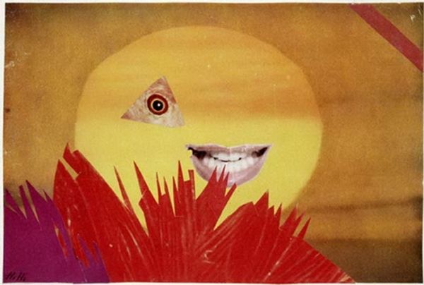 Curator: Right now, we're looking at Sir Sidney Nolan's intriguing work, "Kelly and Red Horse," currently residing in the Tate collection. Editor: It has a stark, almost unsettling quality. The red horse is so vibrant, while that square-headed figure looks almost robotic. Curator: That figure is Ned Kelly, an infamous bushranger in Australian history, often depicted in Nolan's paintings. The landscape in the background feels both beautiful and desolate. Editor: I’m struck by the strange blend of myth and reality. Kelly is a folk hero, yes, but his story is steeped in violence and rebellion against authority. Nolan captures this tension beautifully. It’s as if he’s hinting at the inherent strangeness within legends. Curator: Exactly! The seemingly simple forms belie the complex narrative beneath the surface. And that red horse, an almost feverish symbol in this harsh Australian environment. Editor: It's true, the raw emotion within this piece lingers. Nolan made us feel the legend.