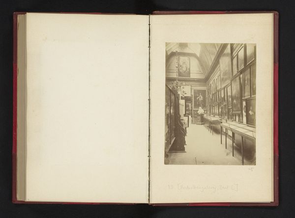 Curator: Pieter Oosterhuis captured this view of the "Entrance of Hall C at the Historical Exhibition of Amsterdam in 1876" in an albumen print. Editor: My first impression is that it looks like a stage set—a little grand, a little artificial. The symmetry and the placement of the sculptures feel carefully orchestrated for effect, rather than naturally occurring. Curator: Precisely. These historical exhibitions were meticulously curated to project a certain image of national identity. Consider the layers here. We see a photograph, capturing an exhibition, intended to showcase history. Each layer adds to the narrative construction. Editor: It's fascinating how the photographer frames the space. He uses the architecture, statues and the paintings themselves to create depth, pulling our eye down this seemingly endless hall. It almost becomes a symbolic corridor through time. Curator: It really does function as a constructed memory lane. Notice, too, the careful placement of busts and figures, almost as guardians of cultural memory. They lend an air of importance, an almost performative reverence. Editor: Right. And the light seems so consciously managed—like a spotlight illuminating specific aspects. It draws your focus but also leaves things in shadow, hinting at hidden histories, things we don’t have access to anymore. Curator: Or perhaps, things the organizers wanted to selectively illuminate. Remember, historical narratives are always subjective, reflecting the concerns and priorities of those who create them. Photography, while seemingly objective, here participates in that selective construction of the past. Editor: It gives you the odd sense of being both present and absent at once, standing in that exhibition, but separated by so many filters. It makes you question what exactly you are looking at and what you think you know. Curator: Yes, it encourages reflection not only on what we see in the image, but on the very act of observing history. And that awareness, that layered perspective, feels particularly potent today. Editor: Absolutely. Thinking about the choices made during that time really does help to contextualize how we remember history even now.