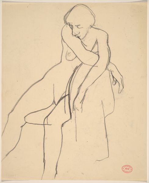Curator: I find myself immediately drawn in by the gestural lines, so immediate and evocative. It makes me wonder, what was Diebenkorn feeling in that moment, during the making of this work? Editor: Here we have Richard Diebenkorn's "Untitled [nude with shirt pulled over her shoulder] [verso]," a pencil drawing created sometime between 1955 and 1967. The subject of the artwork, a female nude draped in fabric, is quite traditional. Yet Diebenkorn's economical line and focus on form elevate it. One can analyze how traditional class hierarchies affect labor practices in creative fields by how Diebenkorn depicted his nude figure here in a manner that subverts conventional techniques and themes prevalent in drawing from this period. Curator: Yes, but I feel like it almost captures a breath, the in-between of being clothed and unclothed, as though she is captured in a fleeting moment. It's almost an intimate glimpse into the sitter's world. Editor: Perhaps. Looking closely at the pencil strokes, we see varying pressures, creating darker, more assertive contours that define the figure's left side. It raises some pertinent questions about mark-making. The availability, cost, and cultural perceptions surrounding materials like pencil inevitably shapes what artists can produce, especially since traditionally pencil and drawing was associated with preliminary work that eventually gets elevated to painting and becomes high art. Curator: I love that we're drawn to such different details. It speaks to Diebenkorn's mastery that it's like gazing at someone at a momentary glance while you are still trying to decide what they might mean, the bare bones of something not fully present. Editor: I appreciate how you put it; these subtle tonal shifts highlight how materiality informs Diebenkorn's conceptual choices here. From the standpoint of its making, examining drawings like this allows us to analyze labor practices from a social viewpoint and question long-standing artistic and creative norms. Curator: It is almost voyeuristic. Now that you put it that way, I can start to recognize these subtle distinctions... almost like it takes the hand of a materialist to guide my artistic gaze, a useful pairing, it seems. Editor: Hopefully this dialogue has sparked further consideration around art history's entrenched hierarchy between materials and the role they play in creating the very definition of art.