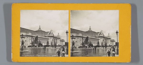 This stereograph captures the Binnenplaats van het Petit Palais during the World Exhibition of 1900. The black and white photography highlights the architectural structure of the Petit Palais, framing the enclosed courtyard with precision. Notice how the anonymous photographer employs a symmetrical composition, with colonnades creating a rhythmic sequence around the courtyard. This repetition produces a sense of balance and order, reflecting the classical ideals of architectural design. The perspective draws our eyes to the sculptures and foliage, elements that soften the rigid structure of the building. The photograph invites us to consider the relationship between space and form. The Petit Palais, designed for the universal exposition, was a site of cultural exchange and display. The photographer captures not just its physical structure, but also its function as a backdrop for human interaction and spectacle. This interplay between architecture and human presence underscores the building's role as a stage for the unfolding drama of modernity.