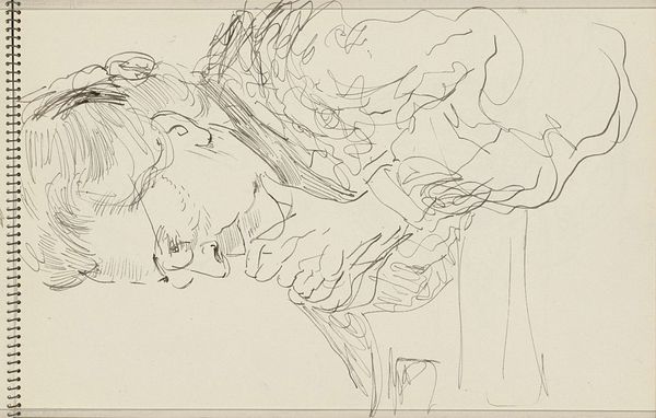Carel Adolph Lion Cachet made this drawing of Schrijvende Joanna Lion Cachet-Cordes, we don’t know when, but it’s likely that it was made in situ. I love how the drawing feels like it's been scribbled into life with such immediate and frenetic energy. There’s a real physical urgency to it. Look at the layering of all those frantic little lines, scratching out the contours of the figure. The artist uses the most economic of marks, just a kind of shorthand to describe the play of light and shadow across the face. It’s such a confident, gutsy way of working. The top of the head is described by a mass of swirling lines which suggests the mass of the hair. Then, down below, look at the contrast in the more deliberate, careful lines used to describe the face, full of character. It's a bit like those quick portraits by Van Gogh, where you can feel the artist wrestling with the subject, trying to capture its essence in a flurry of marks. Ultimately, this piece shows us that art is not about perfect representation, but rather about a conversation, an exchange of energy between the artist and the subject.