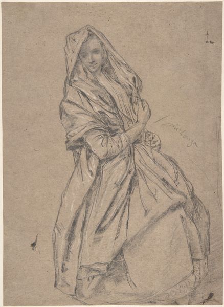 Adam Sandor Ehrenreich created this drawing, Jewish High Priest, using graphite. The composition immediately directs your focus to the figure, monumental in its presence, yet turned away, almost withdrawn. Ehrenreich's strategic use of graphite creates a rich interplay of light and shadow across the high priest's robes. The intricate patterns, though softly rendered, suggest a world of symbolic meaning embedded within the fabric itself. The figure's averted gaze and the heavy draping of the robes might evoke a sense of introspection or perhaps a deliberate distancing from the viewer. Ehrenreich invites us to ponder how identity is constructed and perceived. Here, the priest's elaborate attire speaks of tradition, authority, and the weight of cultural history. The formal qualities of the artwork encourage an engagement with the semiotic function of clothing, and how the priest is portrayed not just as an individual, but as an embodiment of his office.
