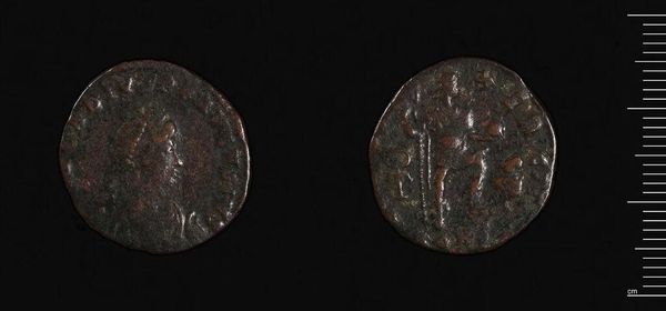 Editor: Here we have a Follis, a bronze coin, of Licinius II Caesar, currently residing at the Harvard Art Museums. It’s amazing how much history is etched into such a small object. What catches your eye when you look at this? Curator: It's like holding a whisper from the past, isn't it? I see a young emperor, idealized yet burdened by the weight of power. The coin itself, worn and imperfect, speaks of its journey through countless hands and pockets. Does it make you wonder about all the stories it could tell? Editor: Absolutely! I hadn't considered its journey like that. Thanks, that’s a whole new level of appreciation. Curator: My pleasure. I think seeing the coin in that way helps unlock its history.