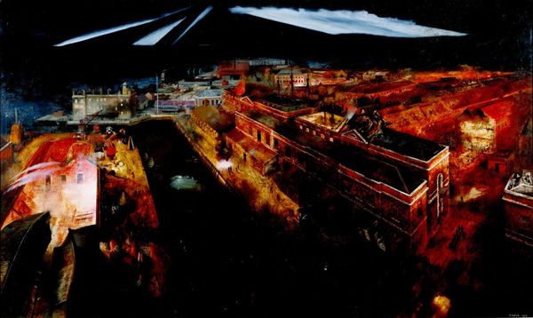 Editor: Here we have Gerd Winner's "Dockland I," currently held at the Tate. The high brick walls surrounding a narrow street give it a rather imposing, almost claustrophobic feel. What do you see in this piece? Curator: Considering Winner's background and the period, I view "Dockland I" as a commentary on the socio-economic shifts in urban landscapes. The starkness evokes the decline of industrial areas and their impact on working-class communities. How does the printmaking medium itself contribute to this message? Editor: Well, the flatness and graphic nature emphasize the harsh realities, devoid of romanticism. Curator: Exactly. And perhaps, questions of accessibility to these spaces, and who they truly serve. It’s a potent statement about power, architecture, and the human condition. Editor: I see it now; it's more than just a street scene!