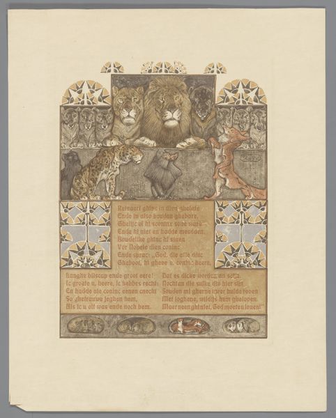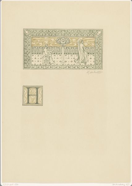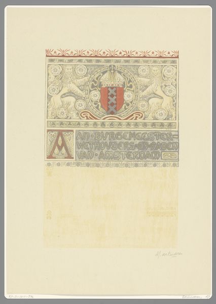Antoon Derkinderen created this artwork, titled "Het vijfde bedryf," using a technique involving watercolour, charcoal and pencil. Derkinderen lived through a transformative period in Dutch history marked by industrialization and social change. He was deeply engaged with the cultural movements of his time. His artwork shows an engagement with themes of national identity and historical consciousness, and it reflects an interest in medieval art. The idealized figure on the left could be viewed through the lens of gender representation. Derkinderen presents a figure of ethereal beauty that aligns with the period's romanticized ideals of womanhood and the expectations that were prevalent at the time. The Amsterdam coat of arms indicates civic pride, and it reflects the increasing awareness of regional and national identities. The artist is balancing the representation of the feminine with the symbols of civic identity. This piece invites us to consider the interplay between personal identity, community, and nationhood.