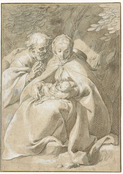 Pedro Duque Cornejo created this small drawing, "Holy Family," using black chalk on paper. Cornejo was from Seville, Spain, a place with a rich history of religious art heavily influenced by the Catholic Church. Looking at the cultural context of 18th-century Spain, we see a society where the church played a central role in everyday life. Religious art wasn't just about aesthetics; it was a tool for teaching, inspiring faith, and reinforcing social norms. The “Holy Family” signifies a deeply embedded subject that perpetuates the idea of a patriarchal family structure, supported by the powerful influence of the Catholic Church. The prevalence of such imagery underscores the conservative nature of Spanish society at the time. To truly understand Cornejo's work, we can delve into archives, religious texts, and historical records. In doing so, we are able to better appreciate the complex interplay between art, power, and society.