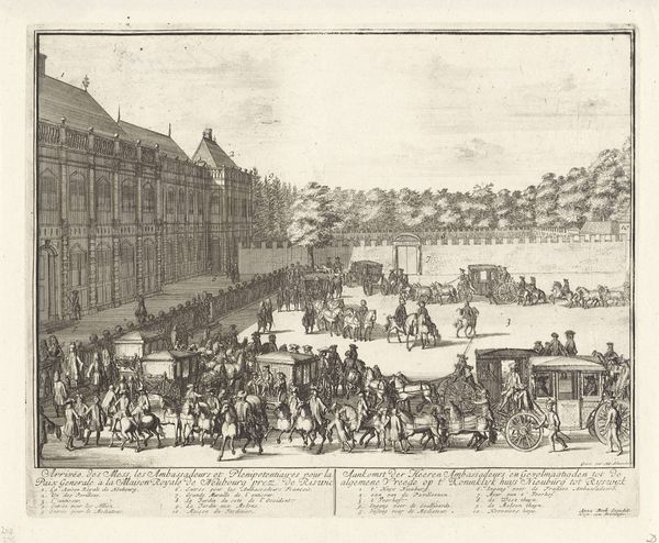 This etching by Leonard Schenk made in 1718, depicts the arrival of the new Dutch ambassador, Colyer, in Constantinople. It offers a window into the diplomatic rituals and power dynamics of the early 18th century. Made during a period of complex relations between the Dutch Republic and the Ottoman Empire, the print visualizes the formal procession of Ambassador Colyer through the city. The image emphasizes the order and grandeur of the event. We see the ambassador and his retinue as a display of Dutch power and influence in a foreign land. The presence of musicians, flag bearers, and mounted escorts, serve to impress upon the viewer the importance of this diplomatic exchange. Historical archives would reveal a great deal about Dutch-Ottoman relations at the time, revealing the economic and political interests at stake. Such research allows us to interpret the artwork not just as a depiction of an event, but as a statement of political intent.
