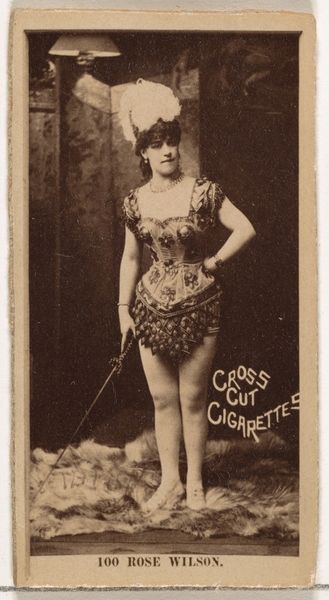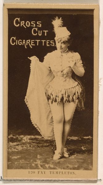 This is Card Number 197, Fay Templeton, a promotional card for Cross Cut Cigarettes by W. Duke, Sons & Co. from around the turn of the century. Here, we see the famed actress adorned in an elaborate costume with fringe. It is the headdress, however, that captures my eye. This feathered cap echoes ancient depictions of winged deities, figures that carry an emotional weight across time, embodying aspirations of transcendence and divinity. Such headdresses remind us of the winged helmets worn by figures in classical antiquity, like Hermes, which signified speed and the ability to traverse worlds. But observe the modern twist: instead of feathers symbolizing spiritual ascent, here they adorn a performer, hinting at the dizzying heights of fame and spectacle. The collective memory of ancient gods subtly merges with the modern cult of celebrity. This card, then, is not merely an advertisement but a complex layering of cultural symbols. It reveals how ancient motifs resurface, transformed and repurposed, engaging our subconscious fascination with power, beauty, and the eternal allure of the stage.