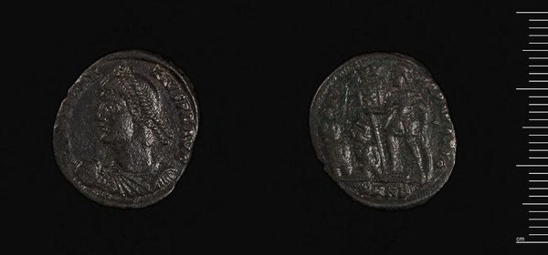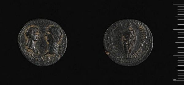Editor: So, this is a Coin of Apameia from the time of Alexander I Balas. What I immediately notice is the distinct profile and detailed figure depicted on each side. What structural elements stand out to you? Curator: The composition relies on circular forms, reinforced by the coin's shape. Observe how the incised lines define the figures, creating positive and negative space that gives the coin its visual weight. Note, too, the relationship between these lines and the coin’s edge; how do they frame and contain the imagery? Editor: That's a fascinating way to analyze it! I was so focused on the figures themselves. Curator: Indeed, but it is through the interplay of line, shape, and form that we begin to understand the artistry inherent in this historical artifact. Did you notice any pattern making? Editor: Now that you mention it, I do see patterns in the hair. Thank you!