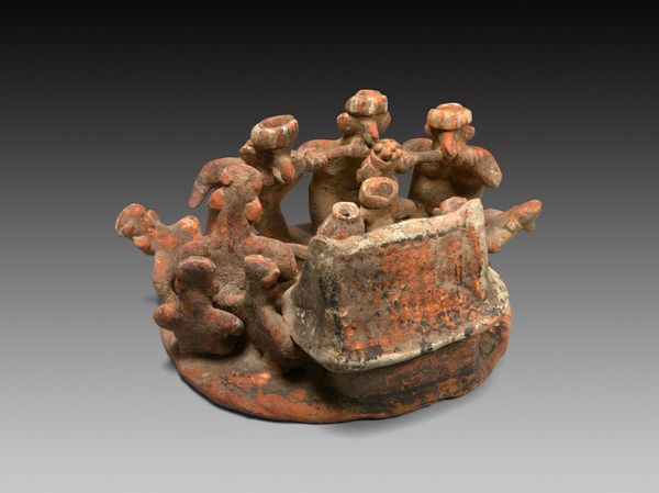 This is a terracotta model of a tree-climbing ritual made by an artist from Nayarit, in modern-day Mexico. It is now housed at the Art Institute of Chicago. The scene presents a community gathering around a stylized tree. There are men climbing and children playing with dogs on the ground. The figures wear cone-shaped hats, possibly indicating their status or role in the ritual. The tree may well have held great cultural and spiritual importance in Nayarit society. The sculpture offers insights into the social and religious practices of the people in the region. Its presence in an institution like the Art Institute allows us to study and appreciate the artistic expressions of cultures outside the Western canon. To understand the ritual and the social structure of the Nayarit people, we can delve into archaeological reports, anthropological studies, and historical accounts of the region. By doing so, we can better understand the cultural context in which this piece was created.