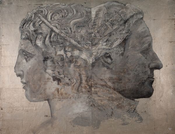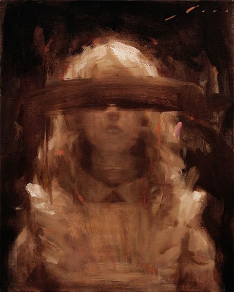 Curator: Look at this intriguing artwork, "Rodin Menace" by Vincent Xeus, an oil painting that offers a contemporary take on classical portraiture. The subject matter presents a painted head or bust, surrounded by abstract brushwork. What do you first notice about it? Editor: It's incredibly evocative! There is an unsettling quality to it, maybe even violent, which stems from the dripping paint and stark contrasts, challenging conventional expectations for figuration. It presents this looming question of why a familiar classic is being tainted or destroyed in a painting of oil on what appears to be canvas or board? Curator: Indeed! Let's consider the implications of employing traditional painting techniques for such an expressive artwork. Oil paint allows for blending and layering, thus creating depth. Looking closer, can we see the brushstrokes and paint application? Editor: Yes, you are right. You can see the process. Xeus uses broad strokes in the dark areas to create shadow. You get a real sense of the labor and the raw physicality involved, contrasting with what one expects with traditional painting from say the Renaissance, but it makes me question, why that particular reference? Curator: The choice to depict a classic bust or head could speak to art history's complex relationship with the art world, as well as historical influence. Consider Rodin’s impact: mass production in plaster or bronze of portions of the human body! Xeus engages that sculptural fragment and turns it on its head! How the museum presents, markets and enshrines the old with this artwork in relation is where meaning forms. Editor: Yes, but with this knowledge comes questions regarding our perception. Xeus makes me re-evaluate our perception, challenging how we approach our own practices. Is the menace in the material application or the fact the art itself is not meant to be put on such a high pedestal anymore? Curator: Excellent questions! "Rodin Menace," I think, invites us to look at the material realities and the socio-historical context. Editor: Well said. It makes you re-evaluate art making today. Thank you for this opportunity to analyze Vincent Xeus’ intriguing artwork.