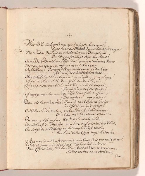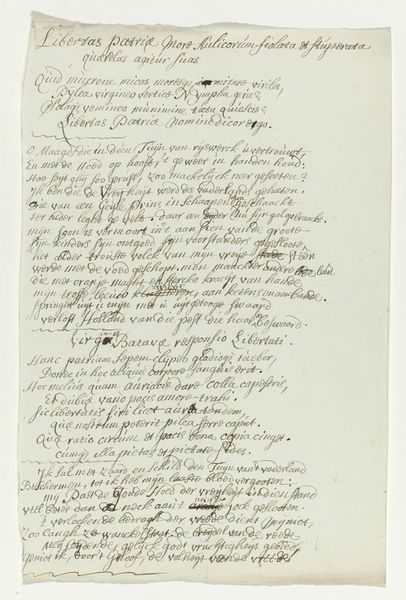 Editor: This document from around 1710, titled “Explanation of the Arminian Serpent,” appears to be an ink drawing on paper, currently held at the Rijksmuseum. It's almost entirely text. What catches my eye is the beautifully stylized handwriting—but honestly, the script makes it hard to decipher! What do you see in this piece? Curator: For me, this work immediately calls to mind the complex tapestry of religious and political conflict in the early 18th century. The serpent is, of course, a loaded symbol – historically representing deceit, chaos, and the fall from grace. Its association with Arminianism, a theological movement, positions it as a visual representation of the perceived threats to orthodox religious and political structures. Editor: So the serpent is meant to be… Arminianism itself? What are those names and phrases throughout the work, then? Curator: Precisely. The text accompanying the image clarifies the serpent's symbolism, acting almost as a key. The handwritten notations, carefully inscribed, likely list individuals or ideas associated with Arminianism, further cementing its connection to specific people and potential ideological challenges to the prevailing order. Editor: It's like a who’s who of the Arminian movement. So the choice of handwriting… it’s not just decorative? Curator: Not at all. The baroque style script, though aesthetically pleasing to our modern eye, functions as a visual signifier of the period, imbuing the work with an aura of authority and tradition. It suggests an attempt to formalize and codify the accusations and critiques against Arminianism. Think of it as a carefully constructed visual argument, steeped in the cultural language of its time. Editor: Fascinating. I initially just saw beautiful writing, but it sounds like everything – the serpent, the text, the script – is working together to communicate a very specific, critical message. It makes you wonder what the intended audience would have made of it! Curator: Indeed, understanding the symbolic language of the past helps us to see how images actively shaped public opinion and negotiated complex historical events.