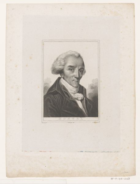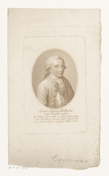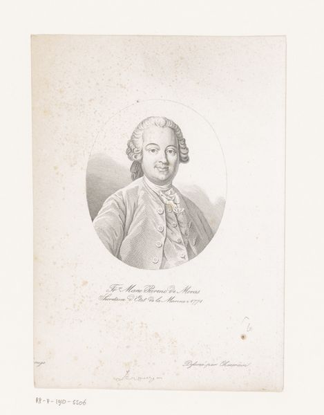 Editor: So, this is a print – a portrait of Georges-Louis Leclerc, graaf de Buffon, made with pencil sometime between 1822 and 1863 by Lazarus Gottlieb Sichling. It's very detailed, but also somehow feels distant. How do you interpret this work, thinking about the material process? Curator: I find it compelling to consider this work through the lens of its production. The transition from a drawing to a print allows for the reproduction and broader distribution of the image. Think about it: a drawing possesses a unique aura because of its direct contact with the artist’s hand, but printmaking fundamentally shifts that. How does the transformation of the pencil sketch into a printed image change the relationship with the viewer, or the artwork itself as a commodity? Editor: That’s fascinating. I hadn’t thought about the printmaking aspect so directly. It creates distance, but also makes it more accessible, doesn’t it? What would have motivated Sichling to create this as a print instead of just a drawing? Curator: Precisely! Consider the social and economic implications. Prints allowed for a wider dissemination of knowledge and imagery, contributing to the growth of a visual culture. The subject, Buffon, a prominent naturalist, was himself engaged in disseminating knowledge through his writings. Is there a parallel to be drawn between the means of production of Sichling's portrait and Buffon's own projects? Editor: That makes so much sense! It's like the method of production reflects the subject's own work. Thanks for clarifying; I have a new appreciation for the piece now. Curator: Indeed. By focusing on the material conditions of art-making, we reveal the interwoven nature of art, society, and knowledge production. I, too, find that reflection quite satisfying.