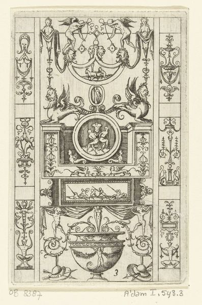 This is Hans Sibmacher’s print, “Onderaan bevindt zich een fries met in het midden een gevleugeld zeewezen in een ovaal,” made around the turn of the 17th century. During this period, the concept of identity was closely tied to social status and religious affiliation, and the artist has been influenced by the artistic conventions of the Renaissance. This print is more than just a decorative design; it mirrors the social and cultural values of its time. Architectural ornament was not merely about aesthetics, it was about conveying power and wealth through classical motifs and elaborate designs. The winged sea creature at the bottom isn't just whimsical, it's a symbol that would have been understood within a specific cultural context, possibly representing maritime power or trade. Sibmacher’s print invites us to consider how the concept of identity was shaped by social expectations and cultural symbols. It reflects both the aspirations and the limitations of the artist’s world.